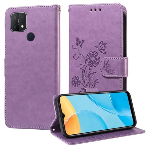 Funda de Cuero con Diseño de Mariposas y Flores En Relieve para Oppo A15 4G India/A15S/A16K/A16E (Morado)