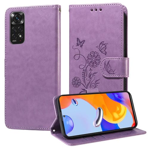 Funda de Cuero con Diseño de Mariposas y Flores En Relieve para Redmi Note 11 4G/Note 11S (Morado)