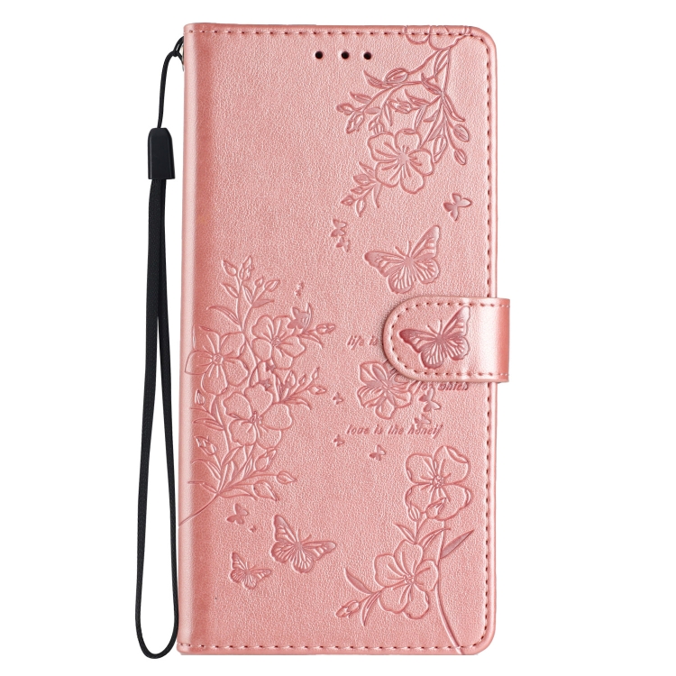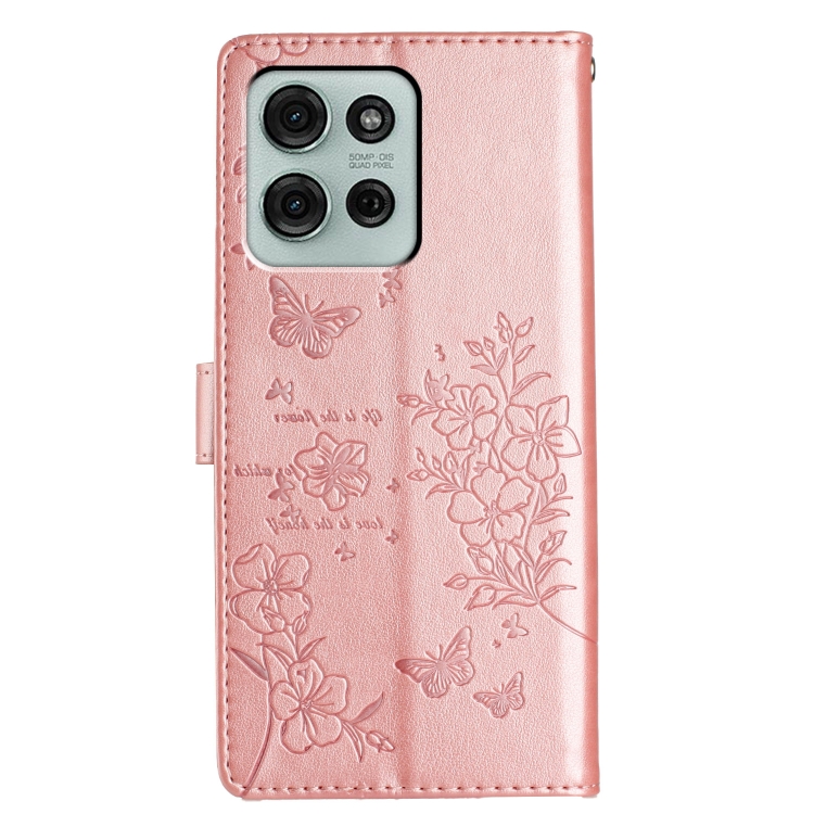 Funda de Cuero para Motorola Moto G75 5G con Mariposas y Flores (Oro Rosa)
