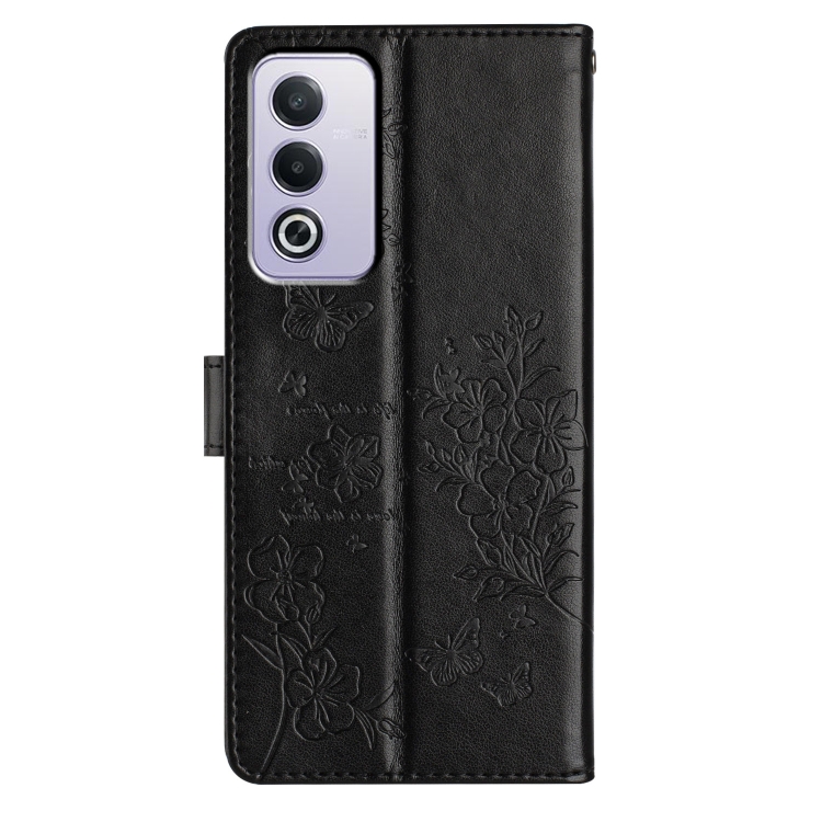 Funda de Cuero con Diseño de Mariposas y Flores para Oppo A3 Pro 5G (Negra)