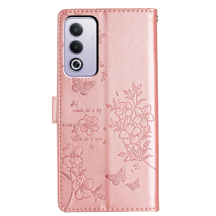 Funda de Cuero con Diseño de Mariposas y Flores para Oppo A3 Pro 5G (Oro Rosa)