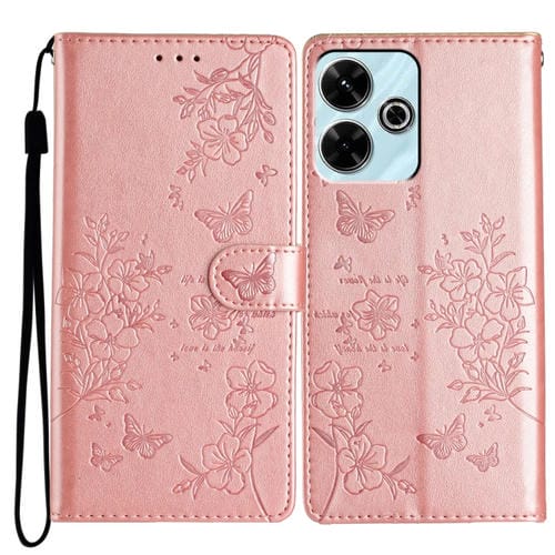 Funda de Cuero con Diseño de Mariposas y Flores para Redmi 13 4G (Oro Rosa)