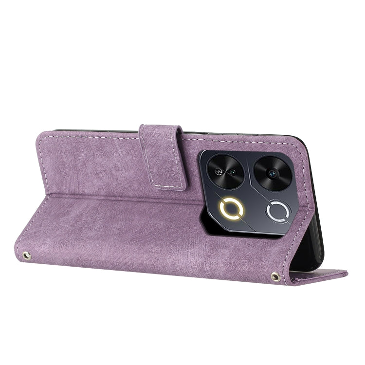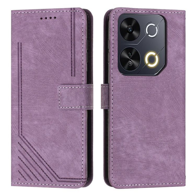 Funda de Cuero Itel P65 con Diseño de Rayas y Cordón (Morado)