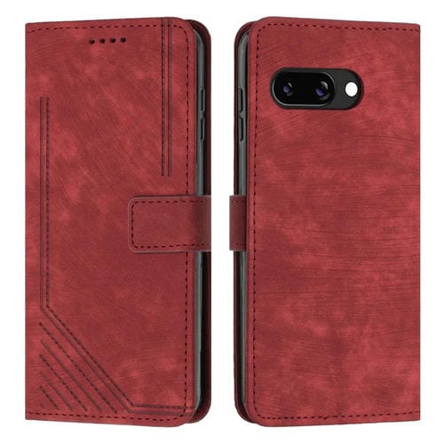 Funda de Cuero para Google Pixel 9A con Diseño de Rayas y Cordón Largo (Rojo)