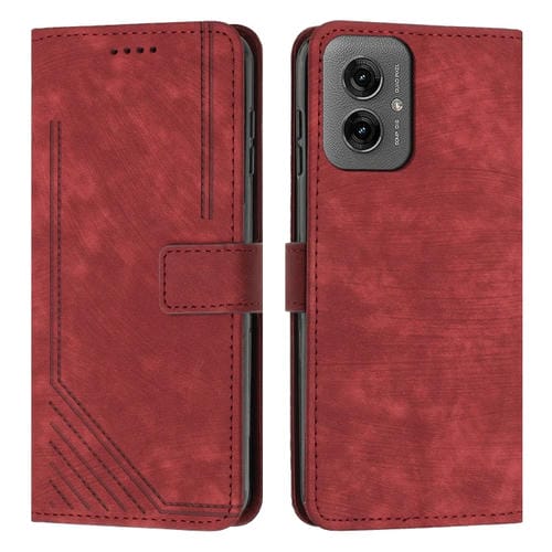 Funda de Cuero para Motorola Moto G55 con Diseño de Rayas y Tacto Sedoso (Rojo)