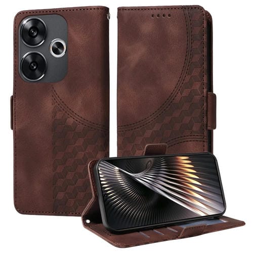 Funda de Cuero con Diseño de Rombos y Estrellas En Relieve para Xiaomi Poco F6 (Marrón)