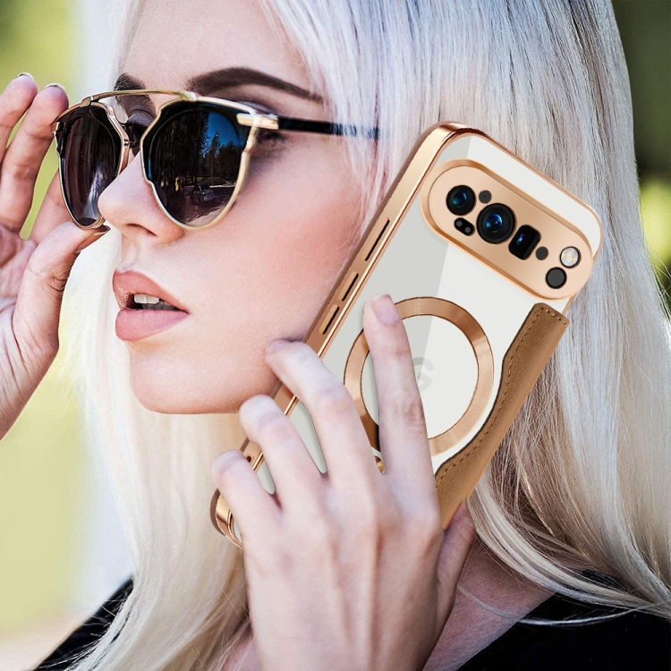 Funda de Cuero Google Pixel 9 Pro XL con Diseño de Rombos y Protección Magsafe Rfid (Marrón)