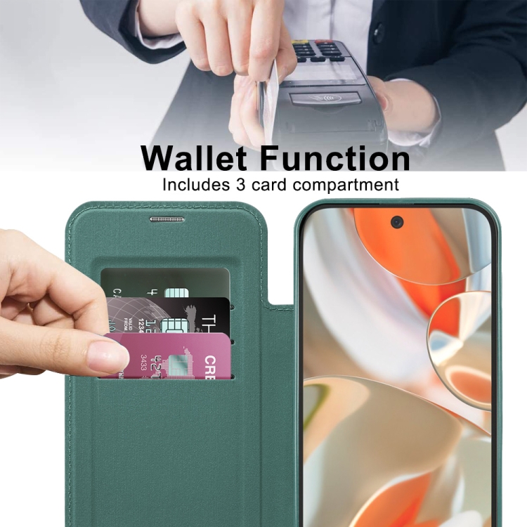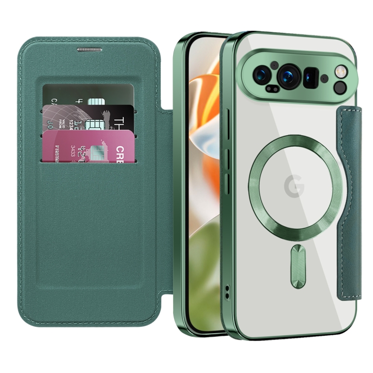 Funda de Cuero Google Pixel 9 Pro XL con Diseño de Rombos y Protección Magsafe Rfid (Verde)