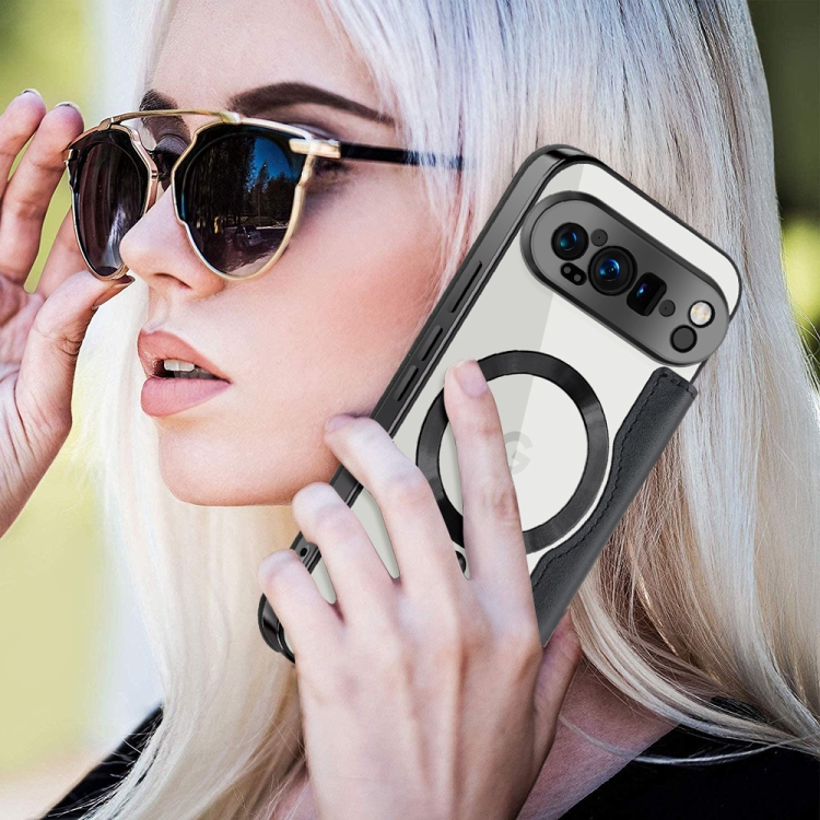 Funda de Cuero con Diseño de Rombos y Protección Rfid Magsafe para Google Pixel 9 Pro (Negra)