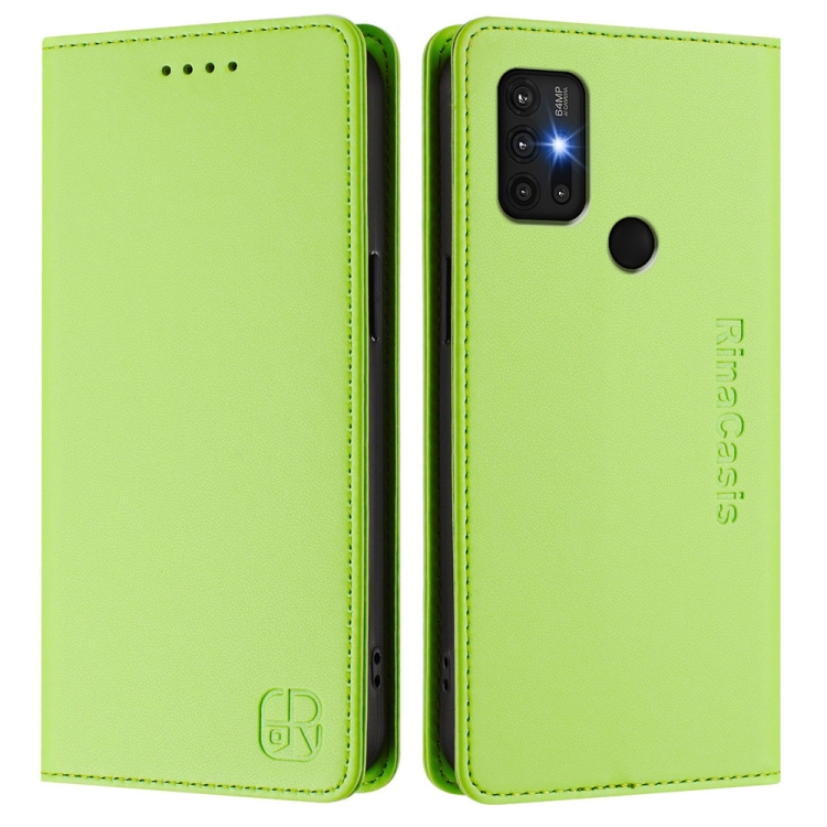 Funda de Cuero Motorola Moto G30/G20/G10 Rc01 con Doble Pliegue y Succión Magnética (Verde Hierba)