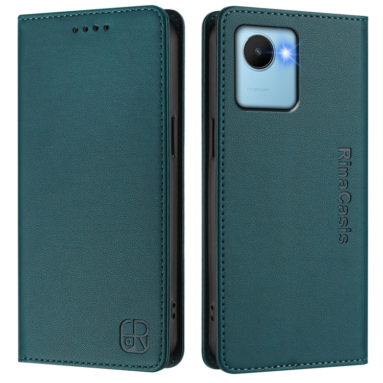 Funda de Cuero con Doble Pliegue y Succión Magnética para Realme C30 4G / Narzo 50I Prime / C30S Rc01 (Verde Oscuro)