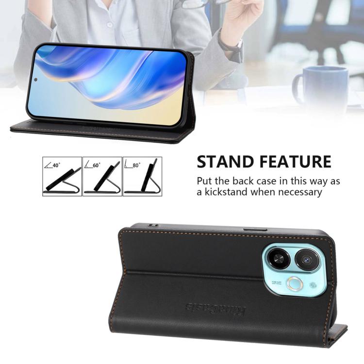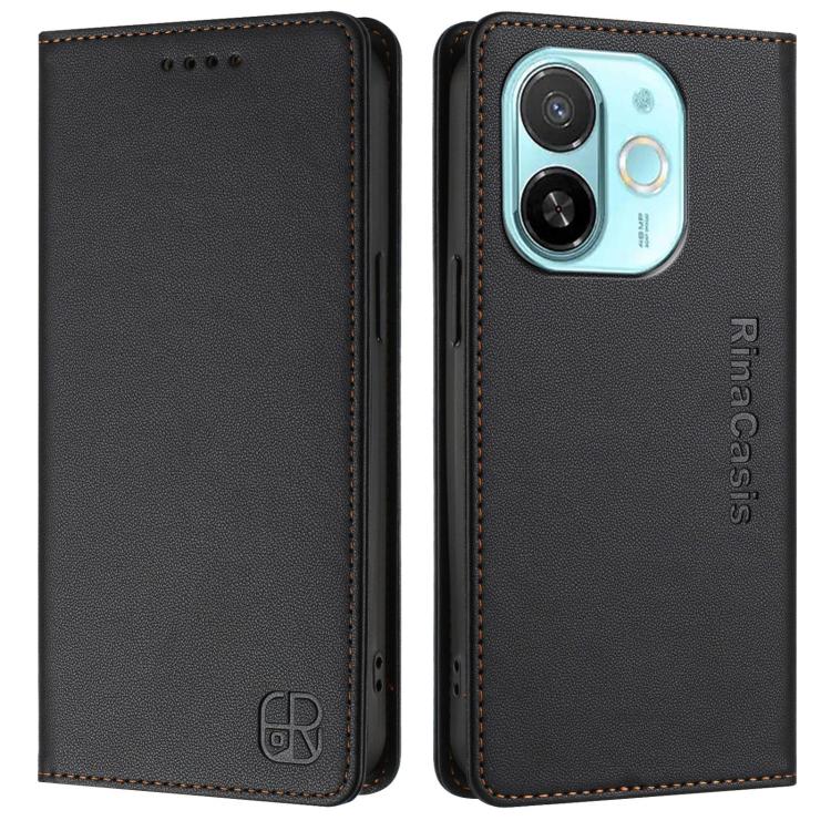 Funda de Cuero con Doble Pliegue y Cierre Magnético Rfid para Tecno Spark 30C 5G / Pop 9 5G Rc01 (Negra)