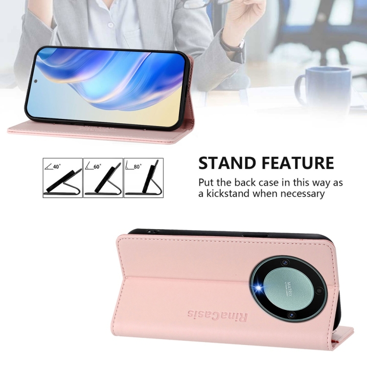 Funda de Cuero con Doble Pliegue y Succión Magnética RFID para Honor X40 / X9A / Magic5 Lite Rc01 (Rosa)