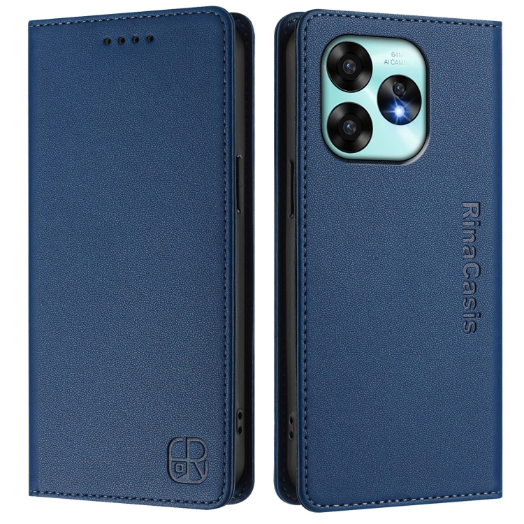 Funda de Cuero para Teléfono Umidigi A15/A15C/A15T Rc01 con Doble Pliegue y Succión Magnética (Azul Oscuro)