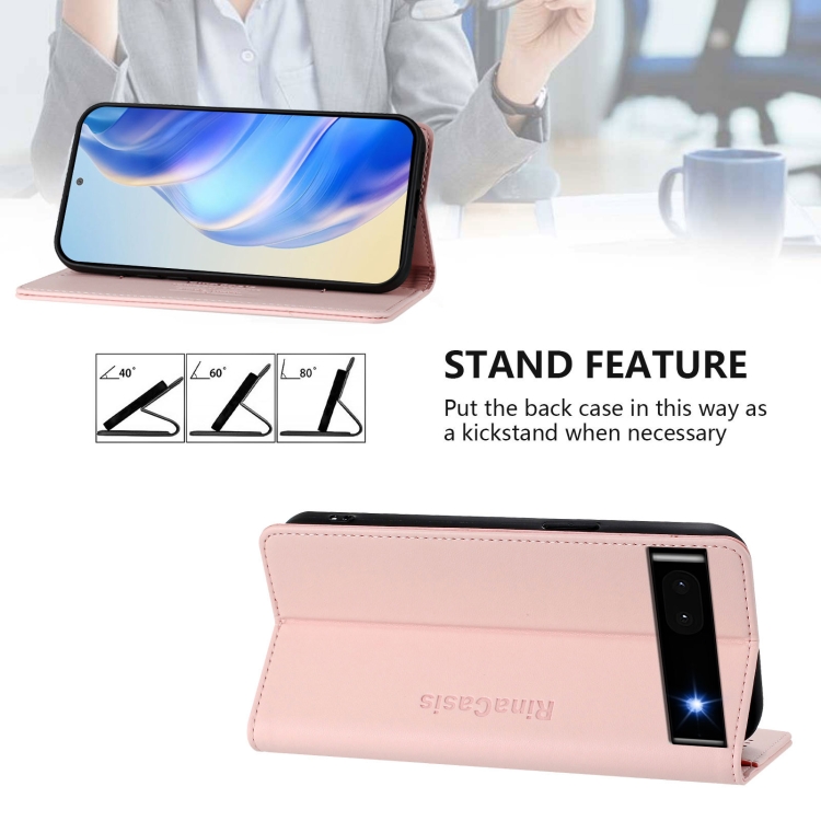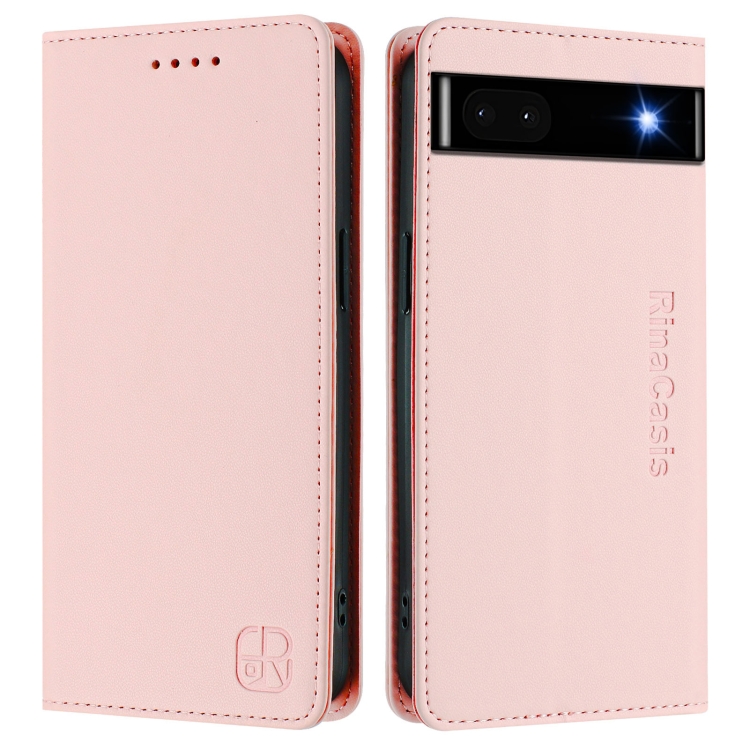 Funda de Cuero con Doble Pliegue y Succión Magnética Rfid para Google Pixel 6A Rc01 (Rosa)