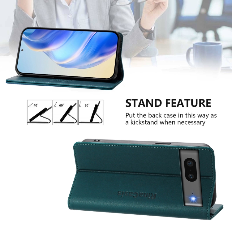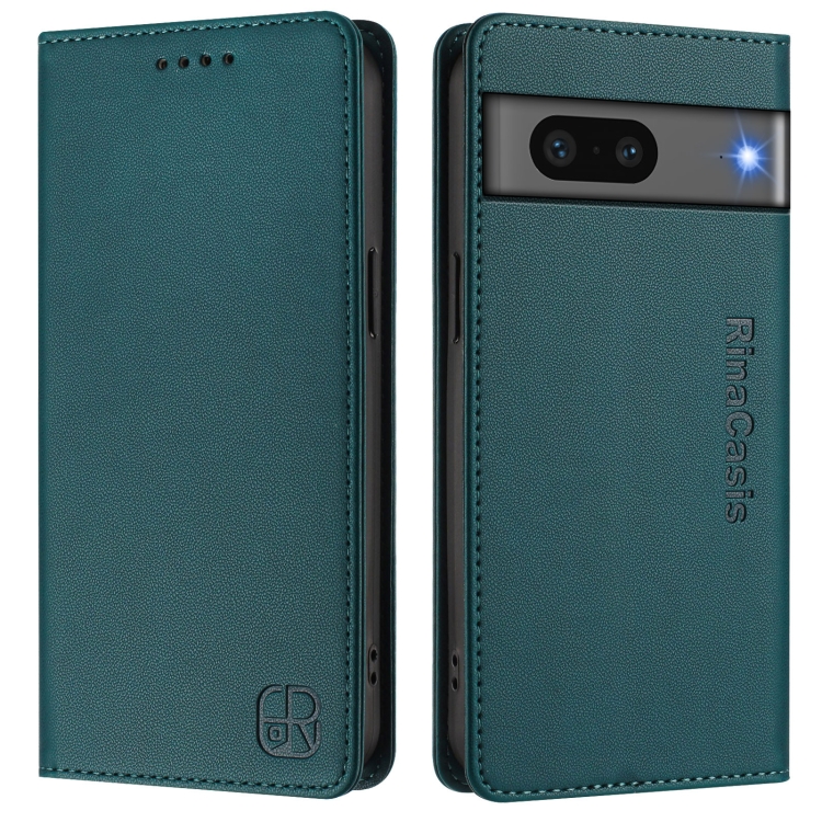 Funda de Cuero con Doble Pliegue y Succión Magnética RFID para Google Pixel 7 Rc01 (Verde Oscuro)