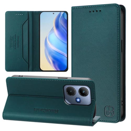 Funda de Cuero para Infinix Hot 30I/X669 Rc01 con Doble Pliegue y Succión Magnética Rfid (Verde Oscuro)