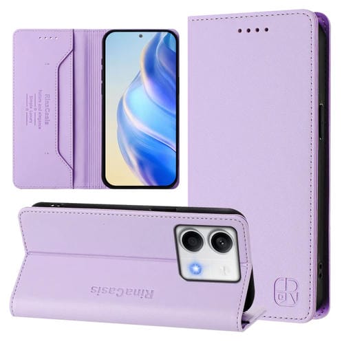 Funda de Cuero con Doble Pliegue y Succión Magnética Rfid para Redmi Note 13 5G Global Rc01 (Morado Claro)