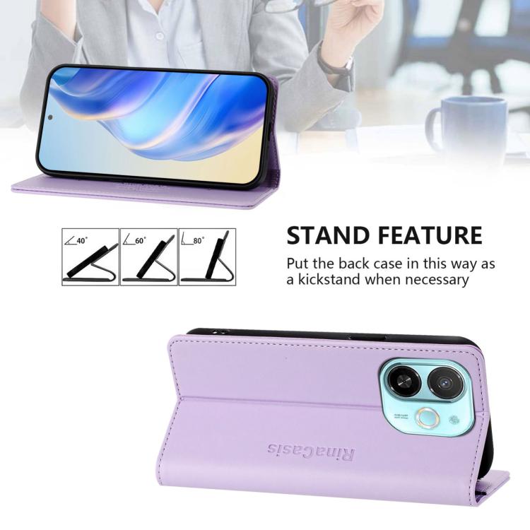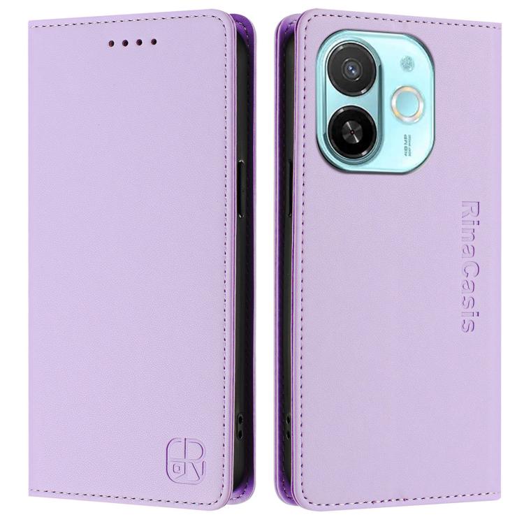 Funda de Cuero con Doble Pliegue y Cierre Magnético RFID para Tecno Spark 30C 5G Pop 9 5G Rc01 (Morado Claro)