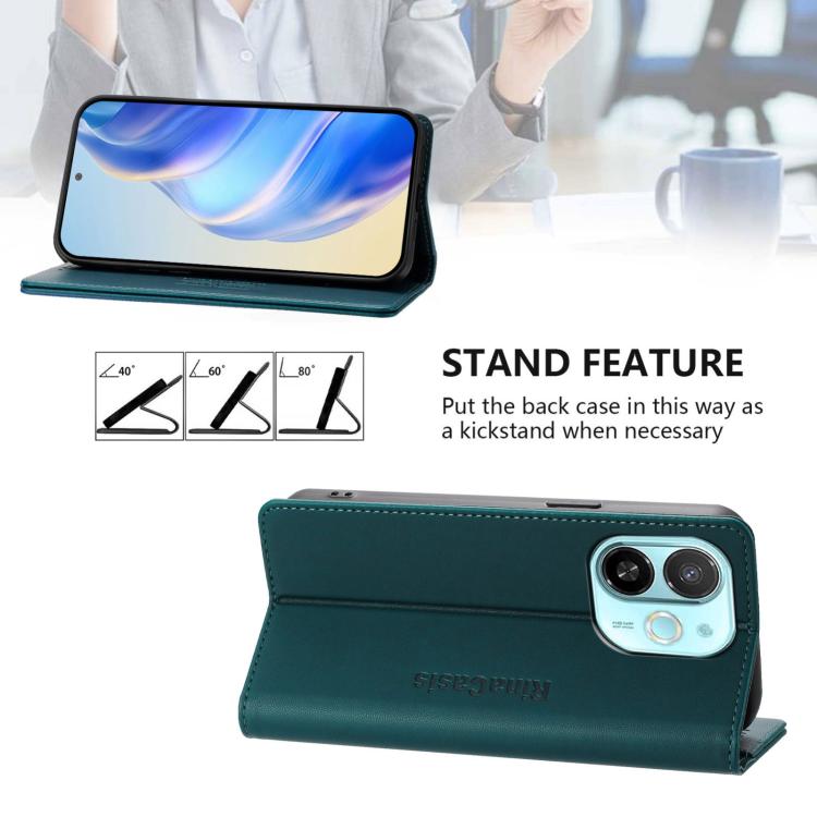 Funda de Cuero con Doble Pliegue y Succión Magnética Rfid para Tecno Spark 30C 5G / Pop 9 5G Rc01 (Verde Oscuro)