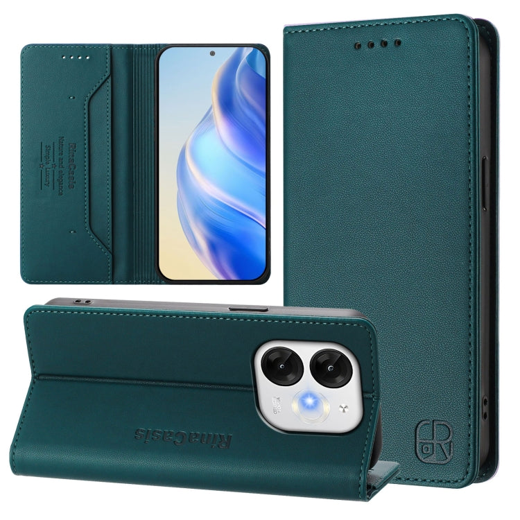 Funda de Cuero con Doble Pliegue y Succión Magnética Rfid para Itel A80 4G Rc01 (Verde Oscuro)