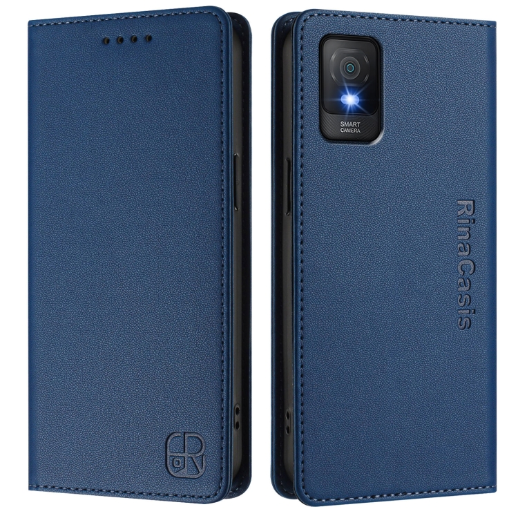 Funda de Cuero para Teléfono TCL 403 Rc01 con Doble Pliegue y Succión Magnética Rfid (Azul Oscuro)