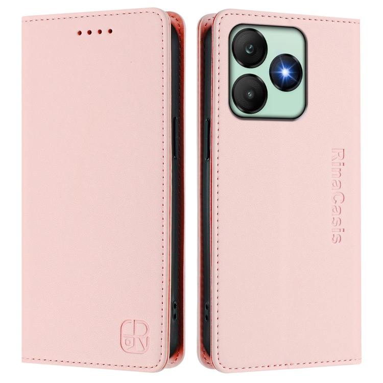 Funda de Cuero con Doble Pliegue y Succión Magnética Rfid para Teléfono Wiko T20 Rc01 (Rosa)