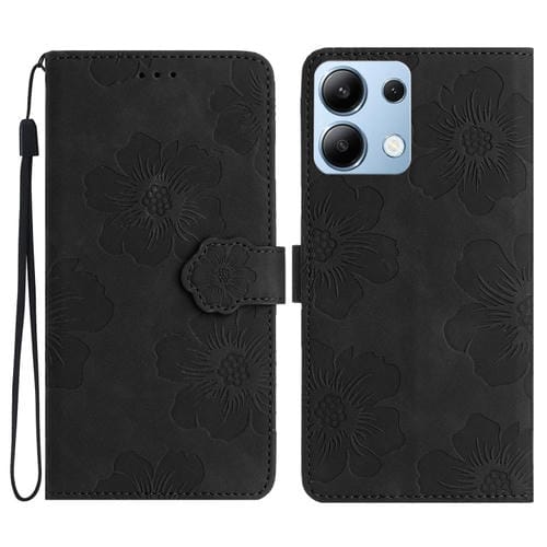 Funda de Cuero con Estampado de Flores En Relieve para Redmi Note 13 4G (Negra)
