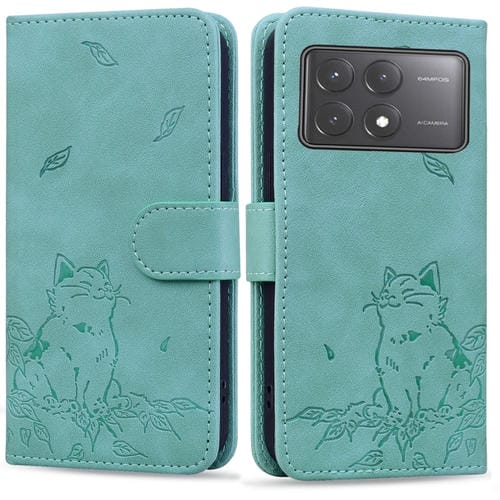 Funda de Cuero con Estampado de Gato para Xiaomi Poco X6 5G (Verde)