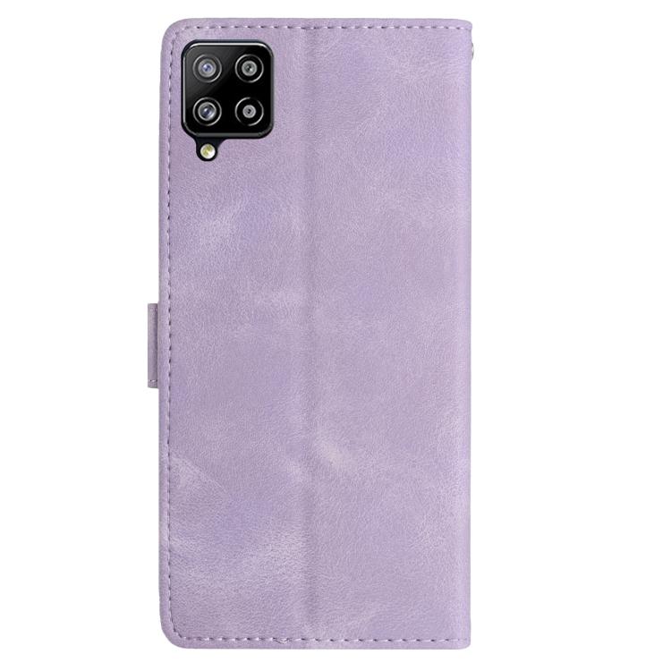 Funda de cuero con estampado floral en relieve para Samsung Galaxy A42 5G (morado claro)