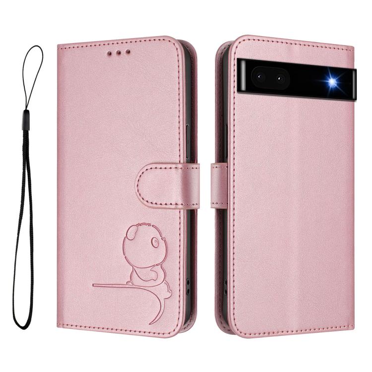 Funda de cuero con estampado RFID y cordón para Google Pixel 6a (rosa)