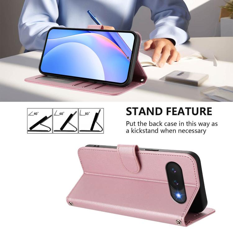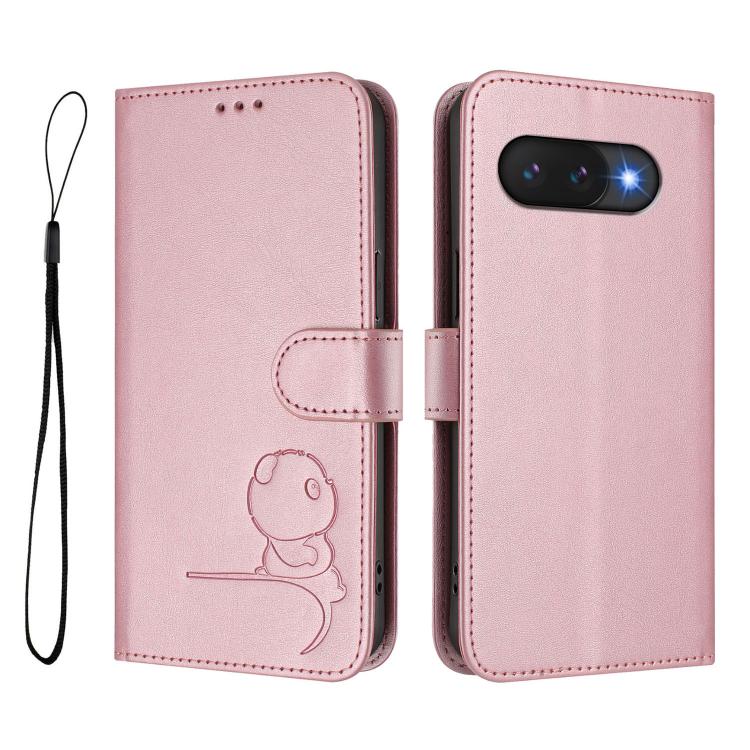 Funda de cuero con estampado RFID y cordón para Google Pixel 9a (rosa)