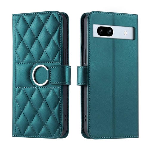 Funda de Cuero para Google Pixel 7A con Forma de Rombo y Hebilla de Anillo (Verde)