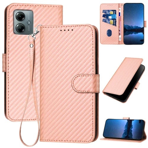 Funda de Cuero con Hebilla de Fibra de Carbono para Motorola Moto G Play 2025 y G Power 2025 con Cordón (Rosa)
