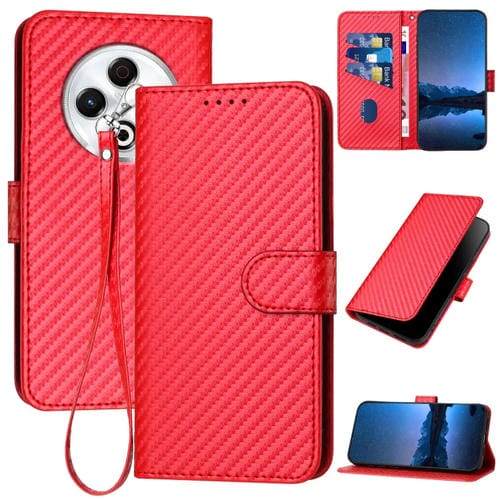 Funda de Cuero con Hebilla de Fibra de Carbono y Cordón para Tecno Spark 30 4G Yx0070 (Rojo)