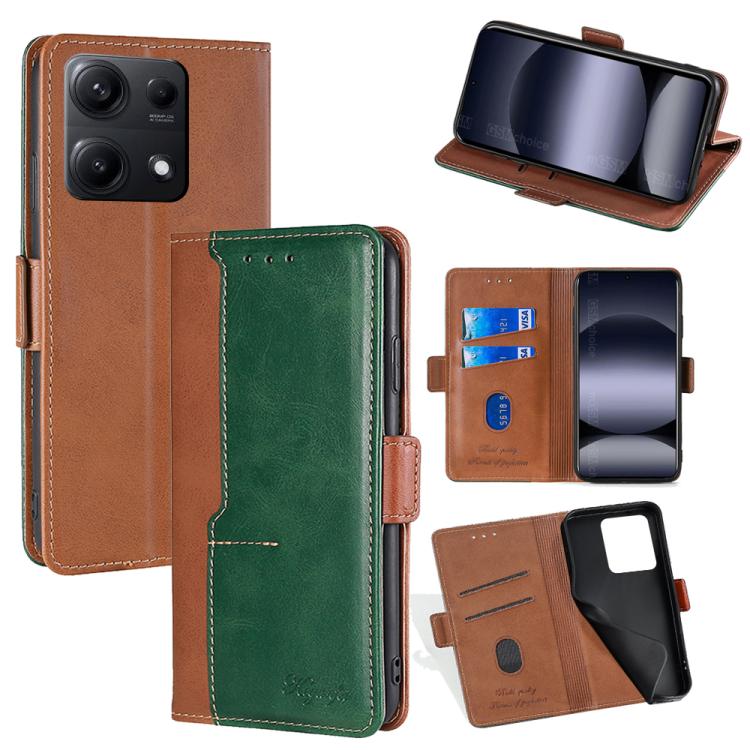 Funda de cuero con hebilla lateral en color de contraste para Redmi Note 14S 4G (marrón claro y verde)