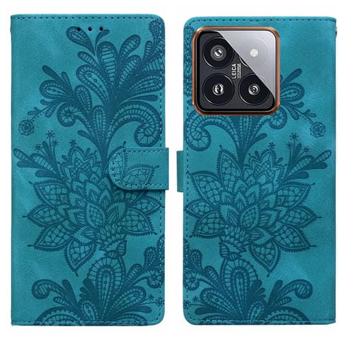 Funda De Cuero Con Hebilla Magnética Y Encaje Floral En Relieve Para Xiaomi 14 Pro (Verde)