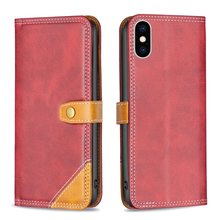 Funda de Cuero para iPhone Xs Max con Hilo de Coser Doble a Juego (Rojo)