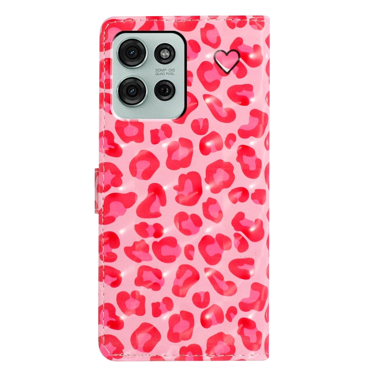 Funda de Cuero con Patrón 3D para Motorola Moto G75 5G (Leopardo Rosa)