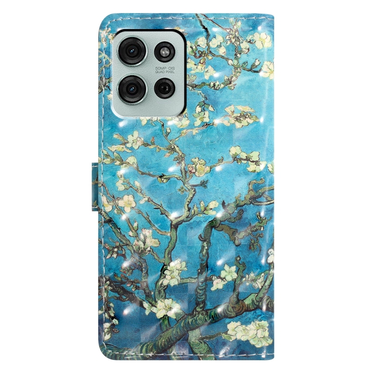 Funda de Cuero con Patrón 3D para Motorola Moto G75 5G (Flor de Albaricoque con Base Azul)