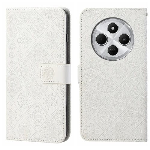 Funda de Cuero con Patrón En Relieve de Estilo Étnico para Redmi 14C 4G (Blanco)