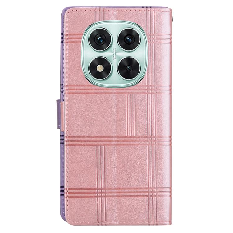 Funda de cuero con relieve a cuadros para Redmi Note 14 Pro 4G/5G (rosa)