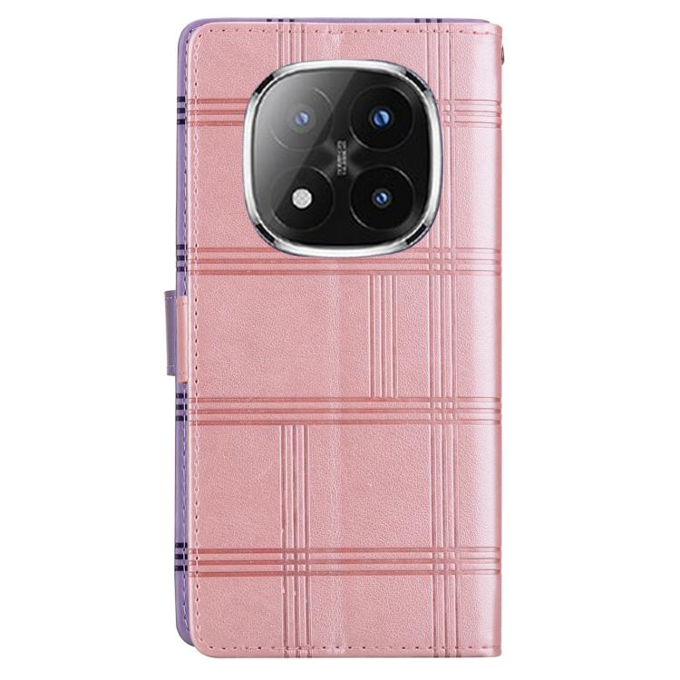 Funda de cuero con relieve a cuadros para Redmi Note 14 Pro+ 5G / Poco X7 5G (rosa)