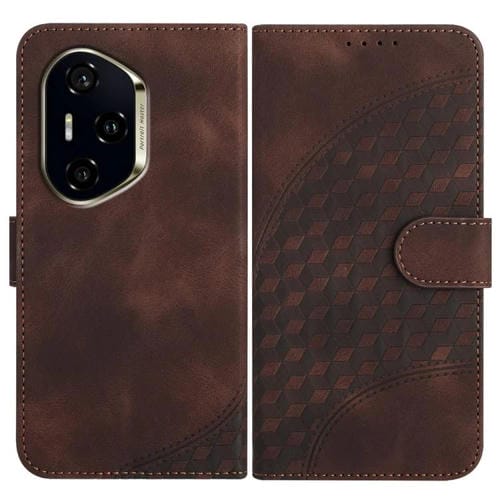 Funda de Cuero con Relieve de Cabeza de Elefante para Honor 300 Pro y 300 Ultra con Cordón (Café)