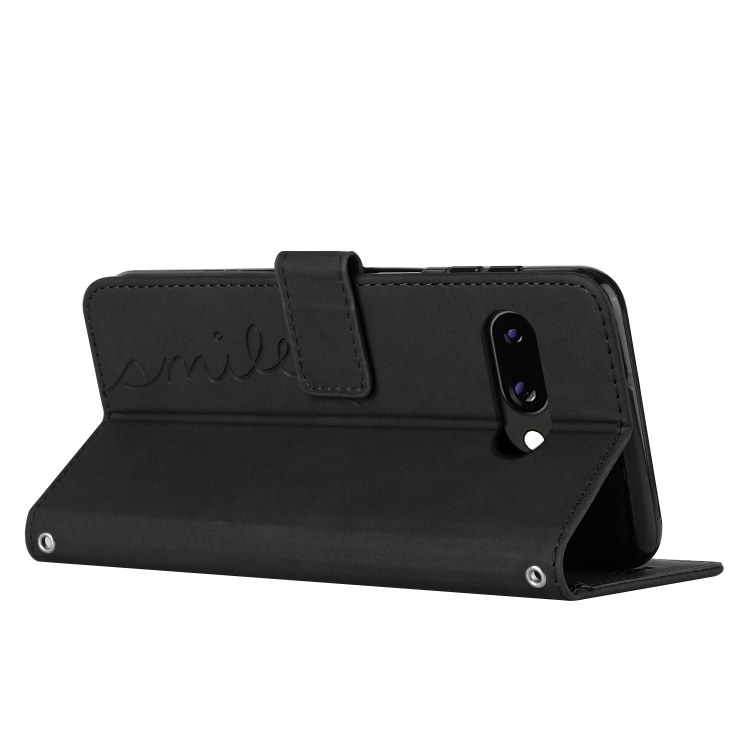 Funda de Cuero con Relieve de Corazón y Cordón Largo para Google Pixel 9A (Negro)