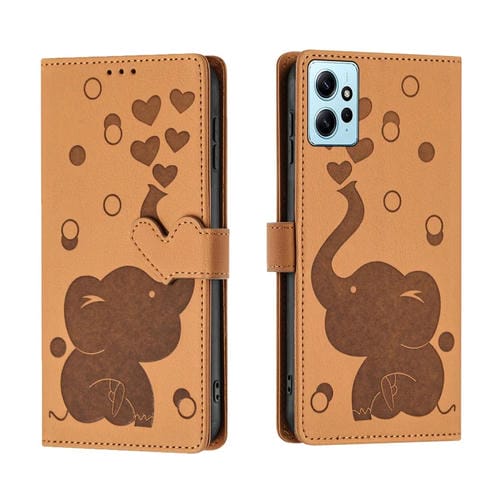 Funda de Cuero con Relieve de Elefante de Dibujos Animados para Redmi Note 12 4G (Amarillo)