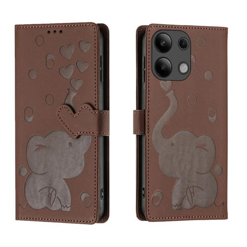 Funda de Cuero con Relieve de Elefante de Dibujos Animados para Redmi Note 13 4G (Marrón)