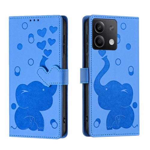 Funda de Cuero con Relieve de Elefante de Dibujos Animados para Redmi Note 13 5G (Azul)