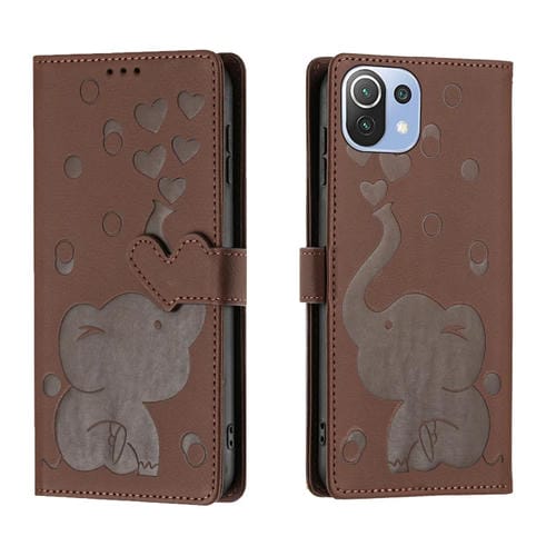 Funda de Cuero con Relieve de Elefante de Dibujos Animados para Xiaomi Mi 11 Lite (Marrón)