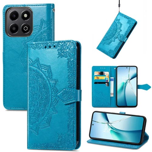 Funda de Cuero con Relieve Flor de Mandala para Honor 200 (Azul)